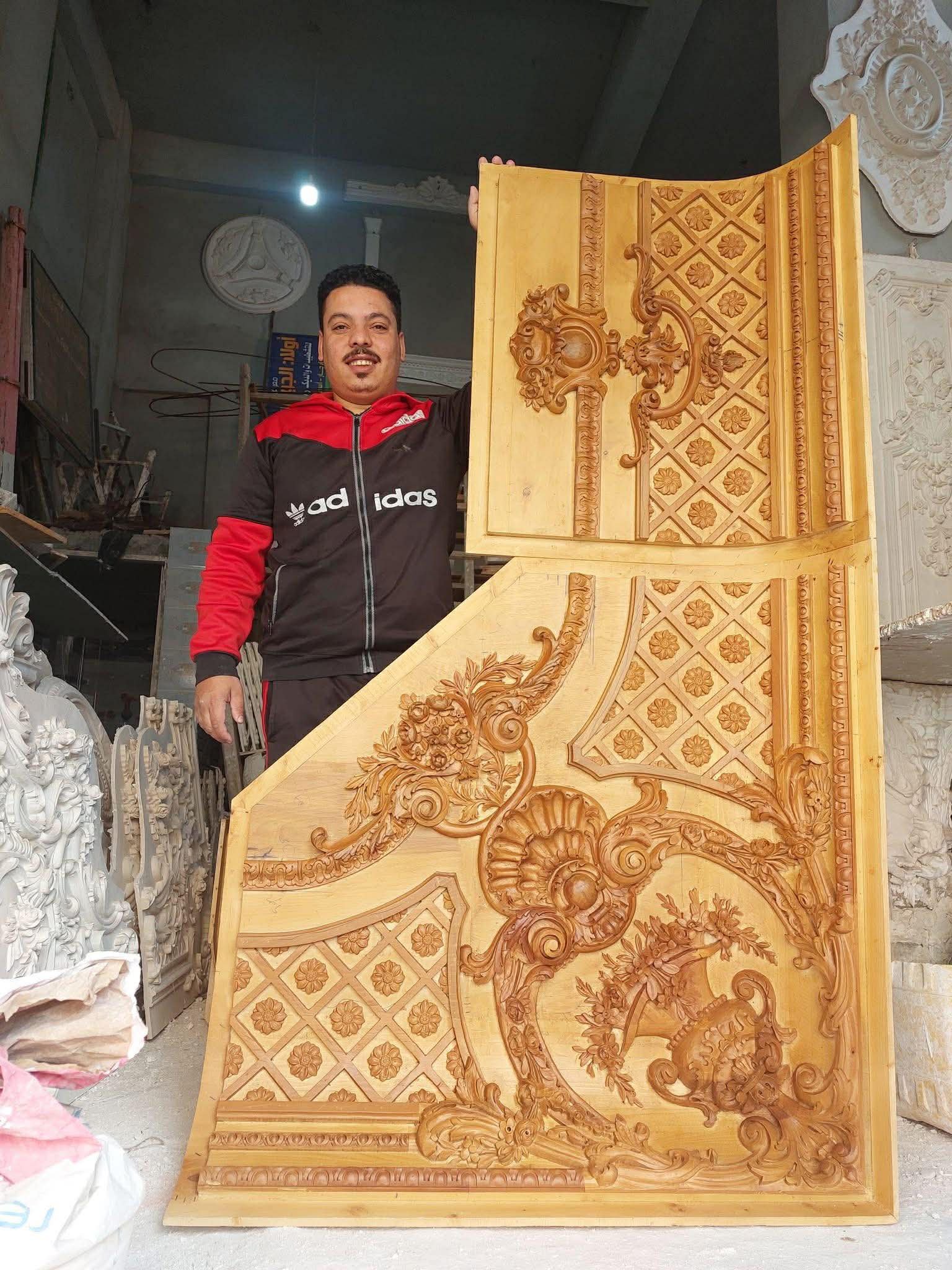 وأكمل الجوهري : بفضل الله اي موديل يخص الديكور العميل بيبعته ليا بصممه الاول ونفذه نحت وصنعه قالب سيليكون واشتغل عليه والحمد لله بنصدر منهم خارج مصر منهم الاردن وامريكا والسعودية والإمارات والجزائر وليبيا وسافرنا جميع محافظات مصر الحمدلله.