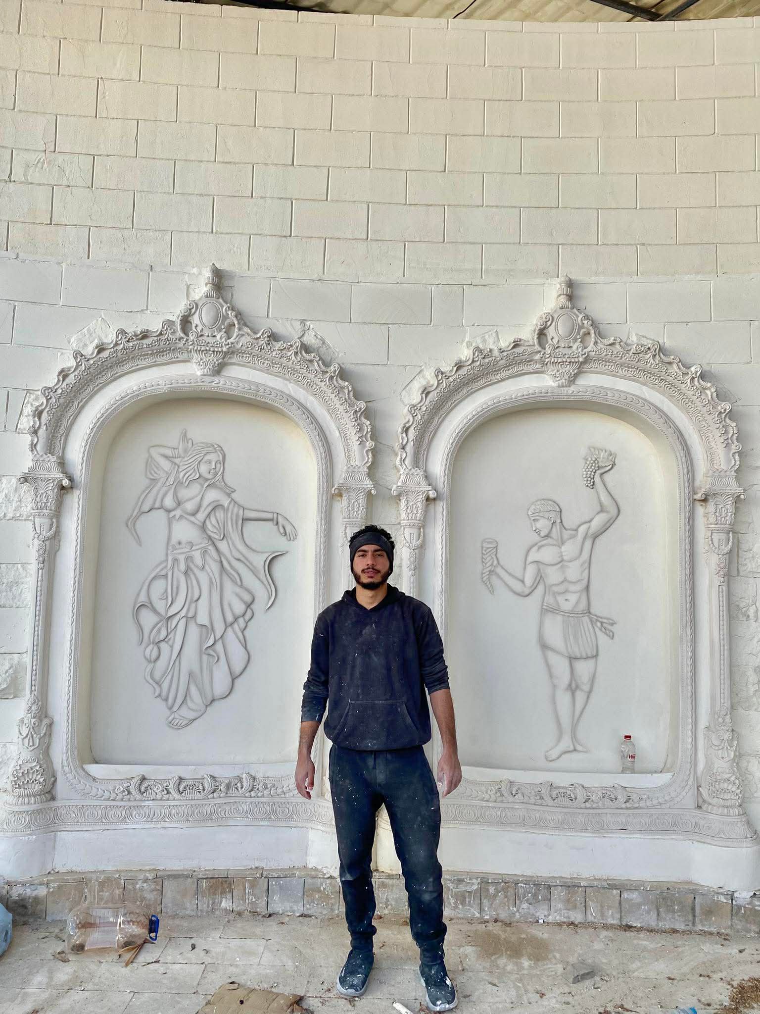 عبد الله بدأ الحكاية لـ “واتوتو” : كان نفسي ابقي صاحب مهنه حره، علشان كدا اتعلمت صنعه الجبس وكمان كنت غاويها وحاببها، وبفضل الله من بداية عملي لحد الان حققت نجاحاً كبيراً وفتحت مصنع ف بلبيس عند الطياره لتصنيع الموديلات الكلاسيك واعمال الواجهات من خامة ال جي ار سي grc وتنفيذ جميع المجسمات وجميع الجداريات والتحف والانتيكات الشغل المصري القديم اللي بيسمي كما هو العصر الڤيكتوري.